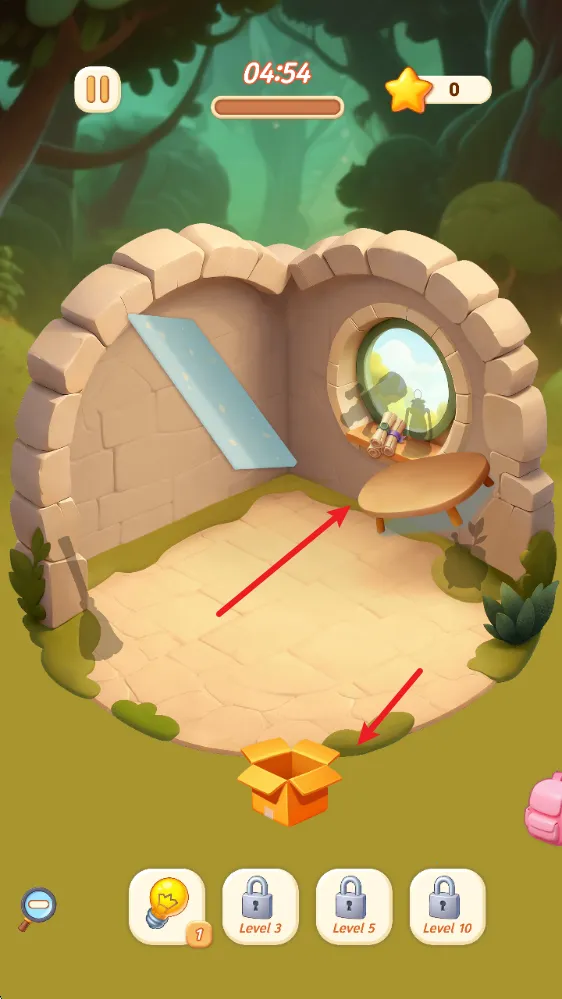 1、开始游戏后,点击屏幕中的箱子就能够得到各种家具和装饰品。